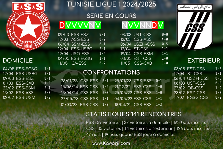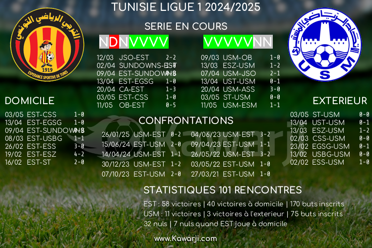 Avant les rencontres prévues ce jeudi pour le compte de la 30ème journée de Ligue 1 tunisienne 2024-2025, voici l'historique de ces confrontations :