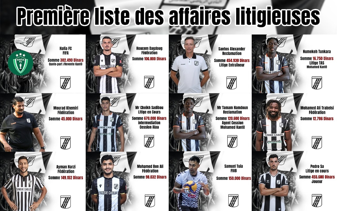 Le Club Sportif Sfaxien a communiqué aujourd'hui le détail de ses litiges financiers actuels.