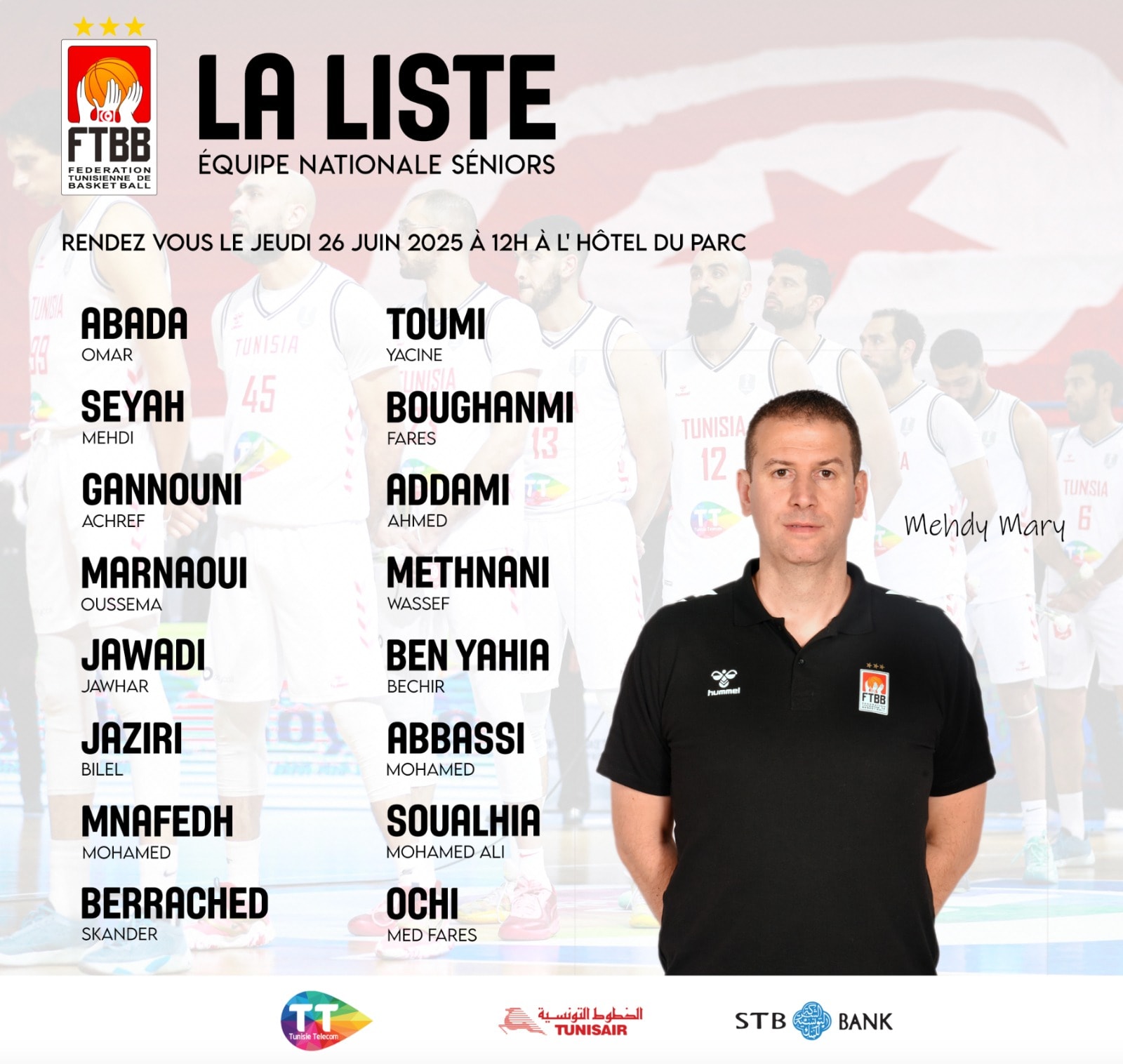 Le sélectionneur tunisien Mahdy Mary a fait appel aux joueurs suivants :