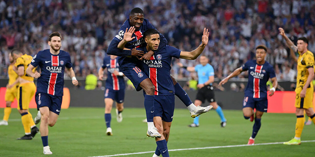 PSG : Donnarumma, Hakimi, Marquinhos, Beraldo, Mendes, Vitinha, Ruiz, Neves, Doué, Dembélé, Kvaratskhelia.