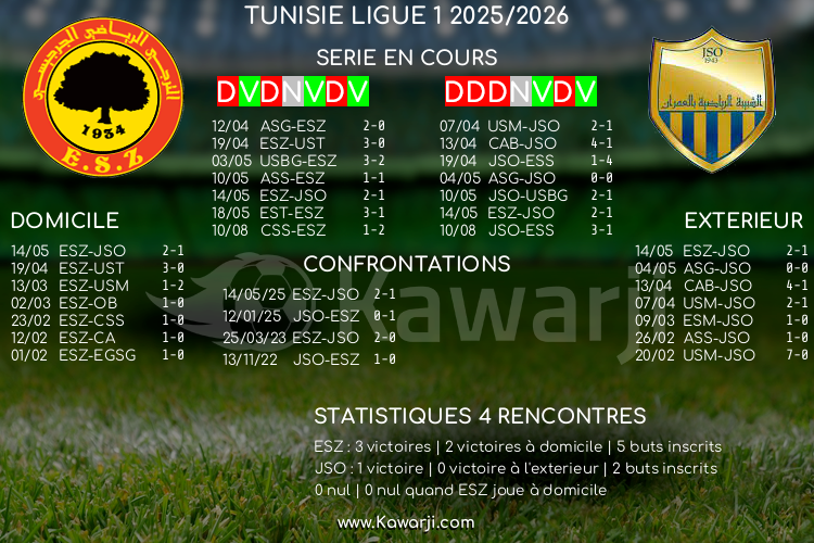 Avant les rencontres prévues ce samedi pour le compte de la 2ème journée de Ligue 1 tunisienne 2025-2026, voici l'historique de ces confrontations :