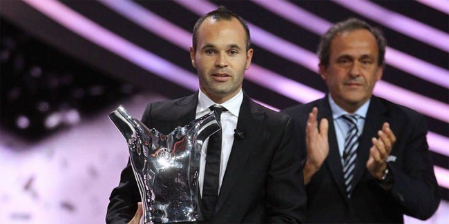 Andres Iniesta a ?t? d?sign? aujourd'hui comme troisi?me pr?tendant au FIFA Ballon d'Or 2012 derri?re les deux intouchables Lionel Messi et Cristiano Ronaldo.
