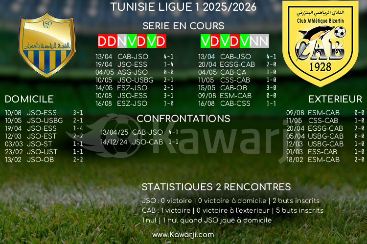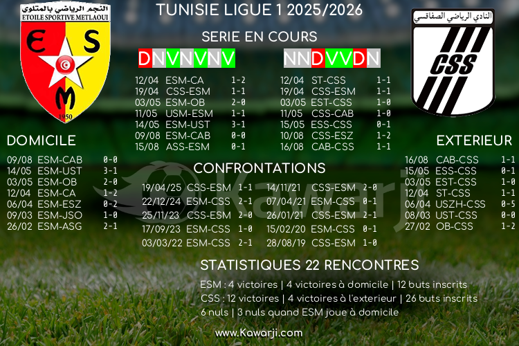 Avant les rencontres prévues ce vendredi pour le compte de la 3ème journée de Ligue 1 tunisienne 2025-2026, voici l'historique de ces confrontations :