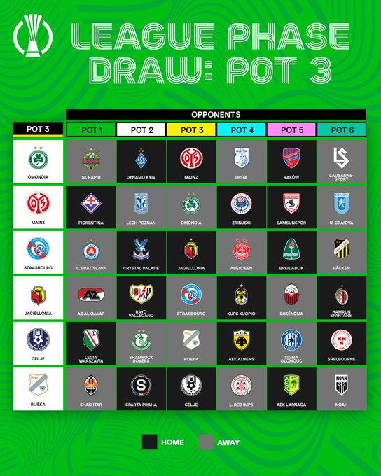 Programme des matches de la phase de ligue de la Conférence League