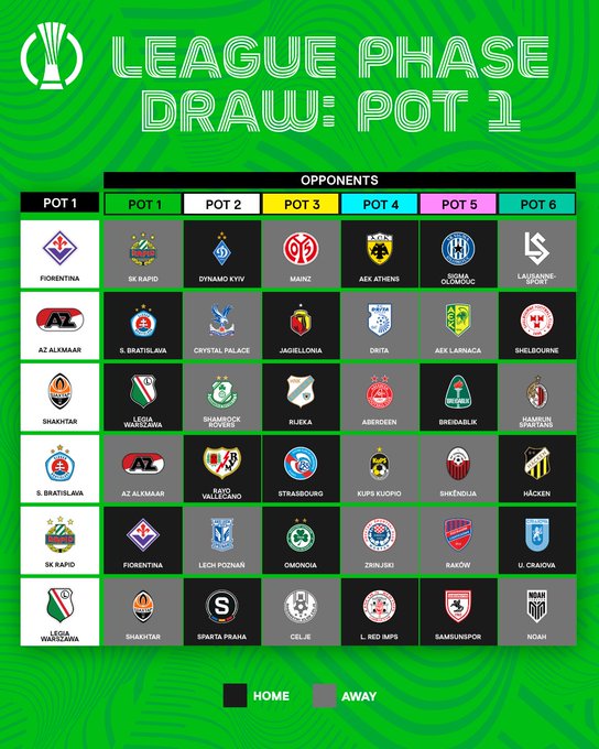 Voici le programme complet des matches de la phase de Ligue de la Conférence League :