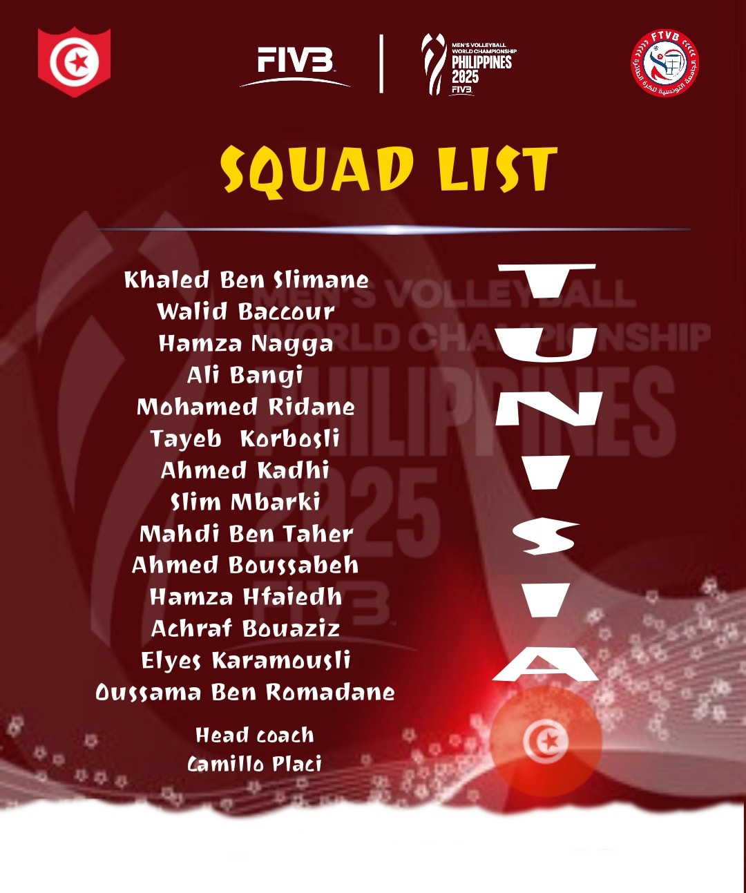 La liste de la sélection tunisienne de Volley-ball au Championnat du Monde 2025