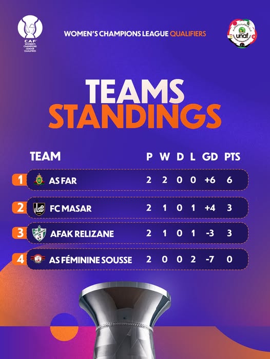 L'Association Sportive Féminine de Sousse a perdu aujourd'hui tout espoir de se qualifier pour la phase finale de la Ligue des Champions Africaine féminine 2025.