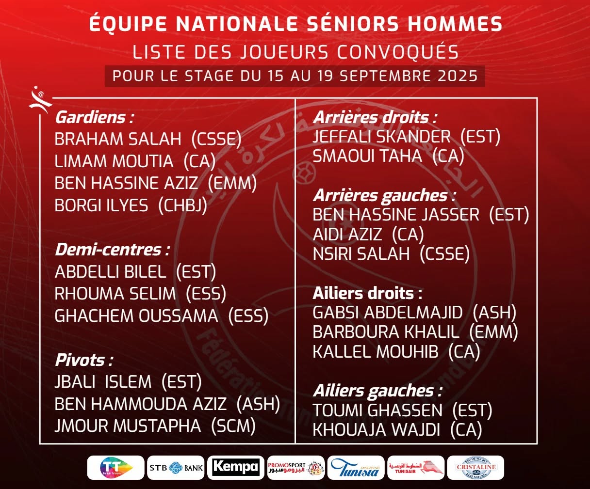 Le staff technique a fait appel pour ce stage de préparation aux joueurs évoluant au championnat tunisien.