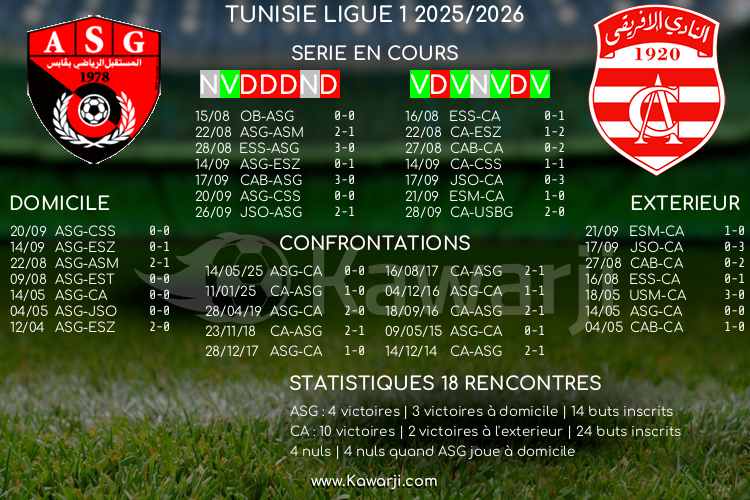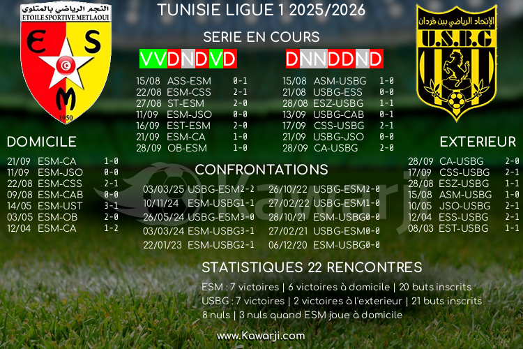 Avant les rencontres prévues ce vendredi pour le compte de la 9ème journée de Ligue 1 tunisienne 2025-2026, voici l'historique de ces confrontations en championnat :