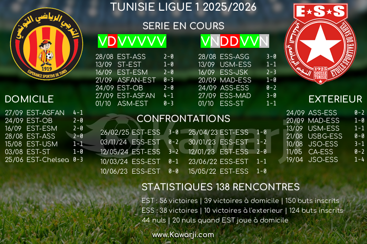 Avant les rencontres prévues ce dimanche pour le compte de la 9ème journée de Ligue 1 tunisienne 2025-2026, voici l'historique de ces confrontations en championnat :