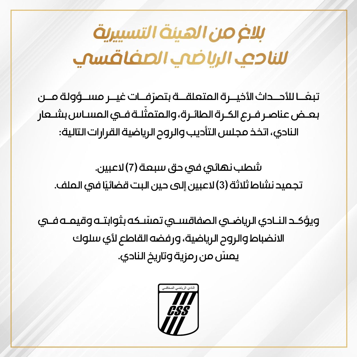 A la suite de dépassements graves nuisant à l'image de la formation sfaxienne, sept joueurs ont été radiés à vie.