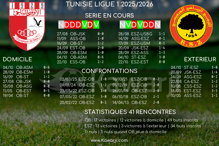 Avant les rencontres prévues ce dimanche pour le compte de la 11ème journée de Ligue 1 tunisienne 2025-2026, voici l'historique de ces confrontations en championnat :