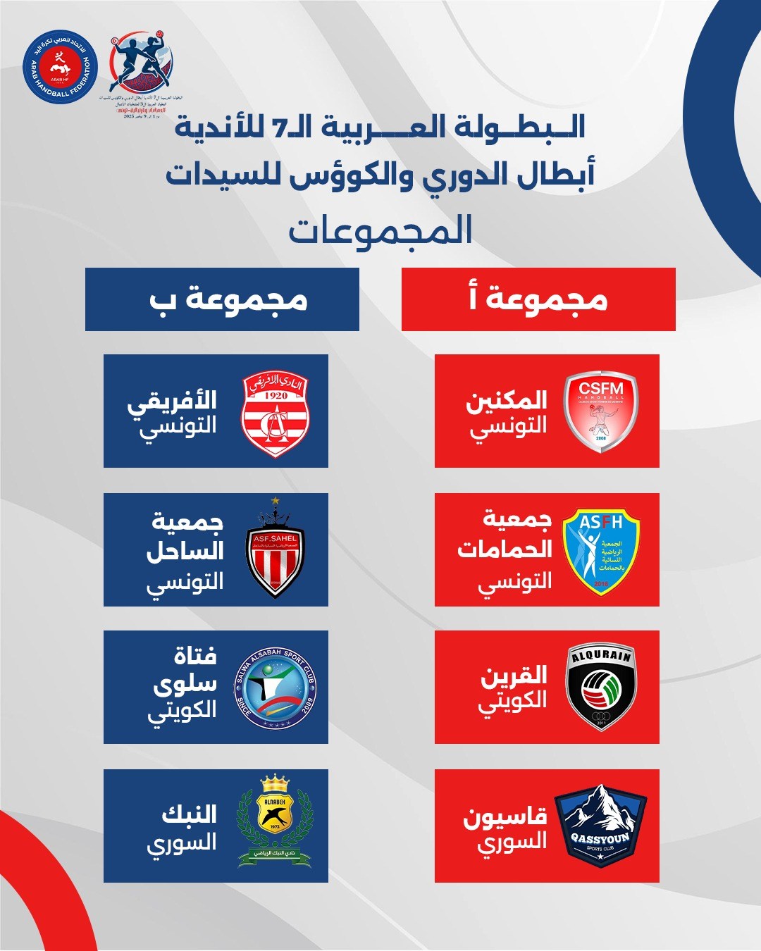 L'Union Arabe de Handball a effectué le tirage au sort du Championnat arabe des clubs champions et vainqueurs de coupe féminin.
