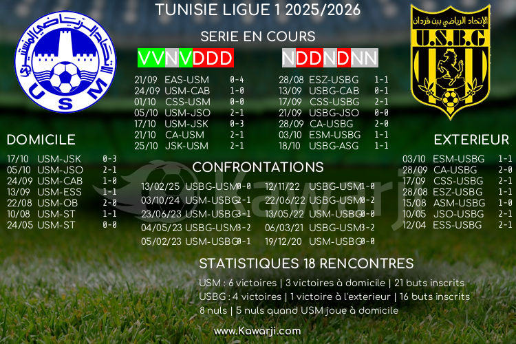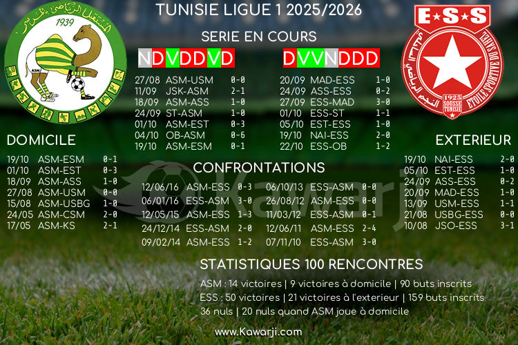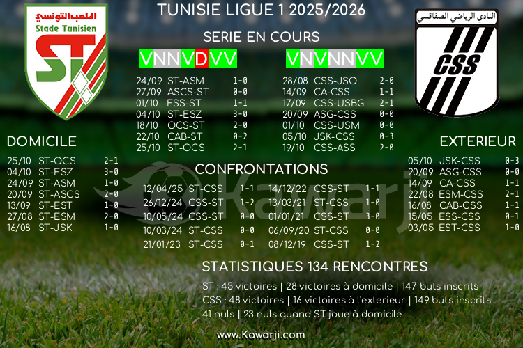 Avant les rencontres prévues ce mercredi pour le compte de la 11ème journée de Ligue 1 tunisienne 2025-2026, voici l'historique de ces confrontations en championnat :