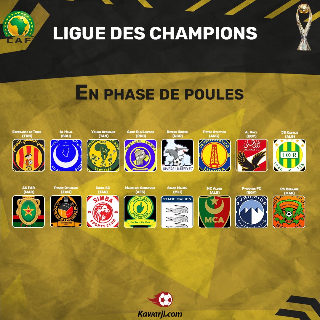 Voici la liste des 16 qualifiés pour la phase de poules la Ligue des Champions africaine :