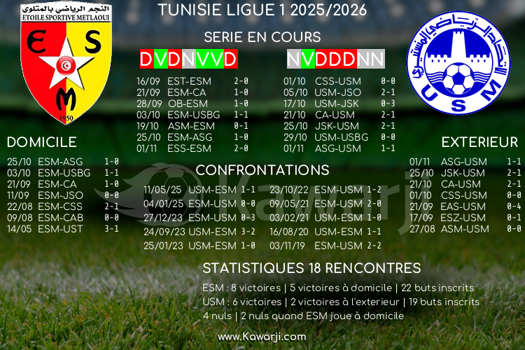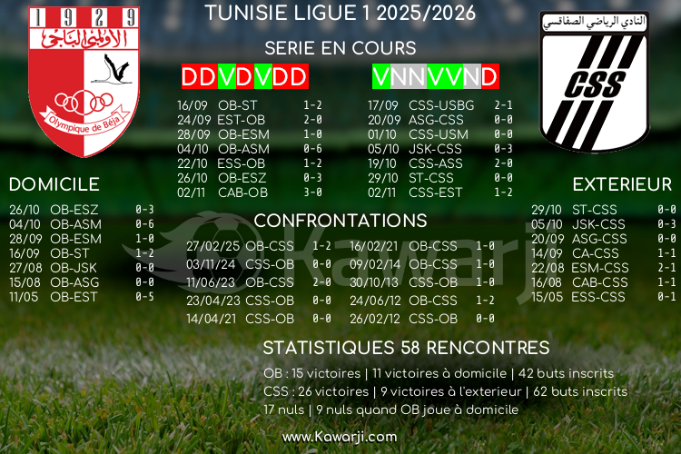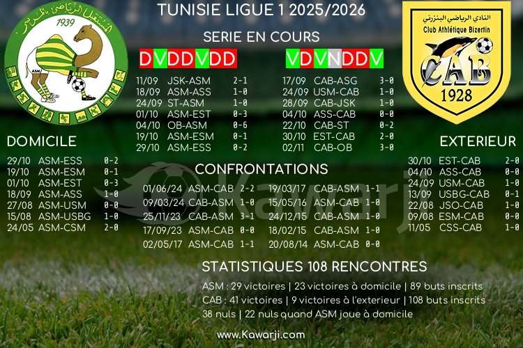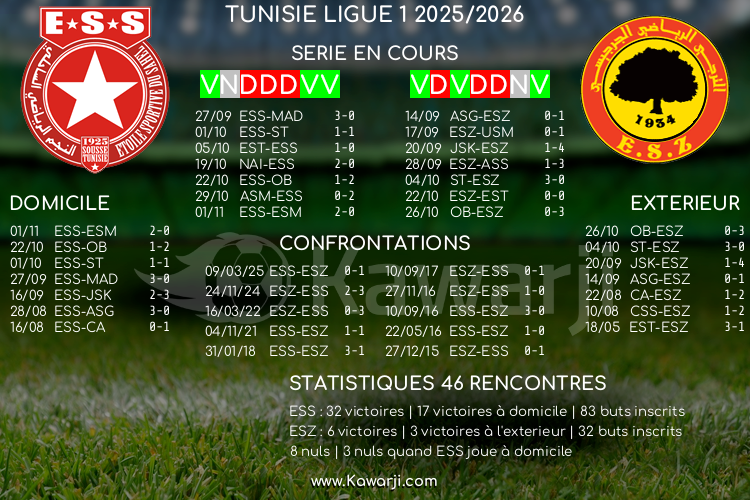 Avant les rencontres prévues ce mercredi pour le compte de la 13ème journée de Ligue 1 tunisienne 2025-2026, voici l'historique de ces confrontations en championnat :