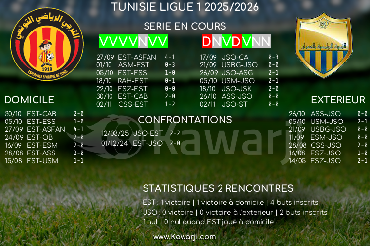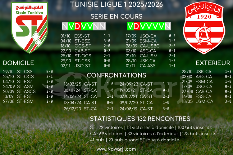 Avant les rencontres prévues ce jeudi pour le compte de la 13ème journée de Ligue 1 tunisienne 2025-2026, voici l'historique de ces confrontations en championnat :