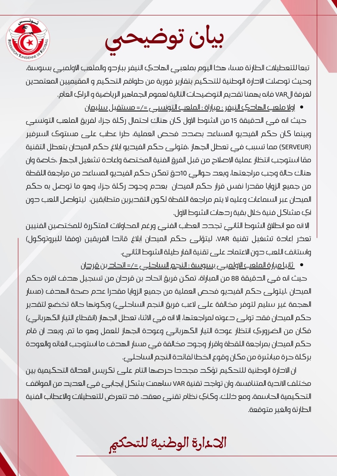 La Direction Nationale de l'Arbitrage explique les décisions des arbitres au Bardo et à Sousse