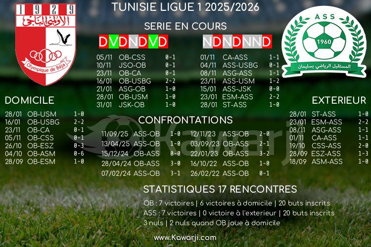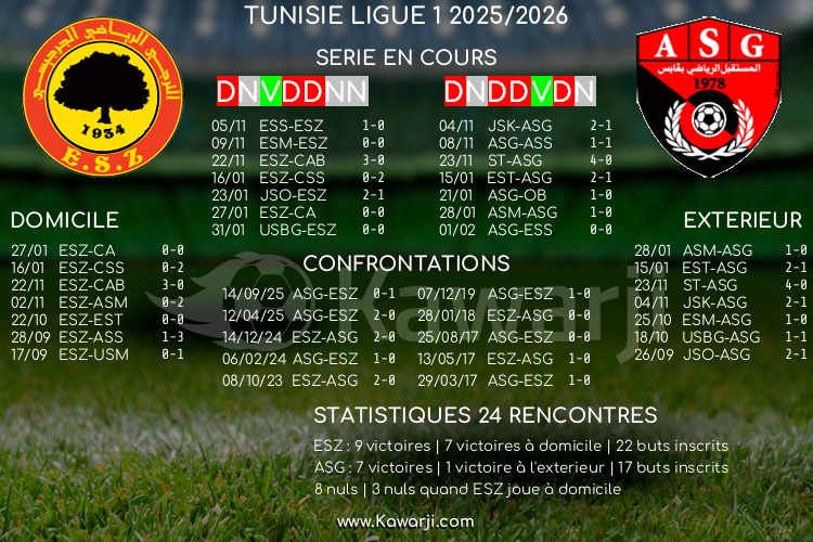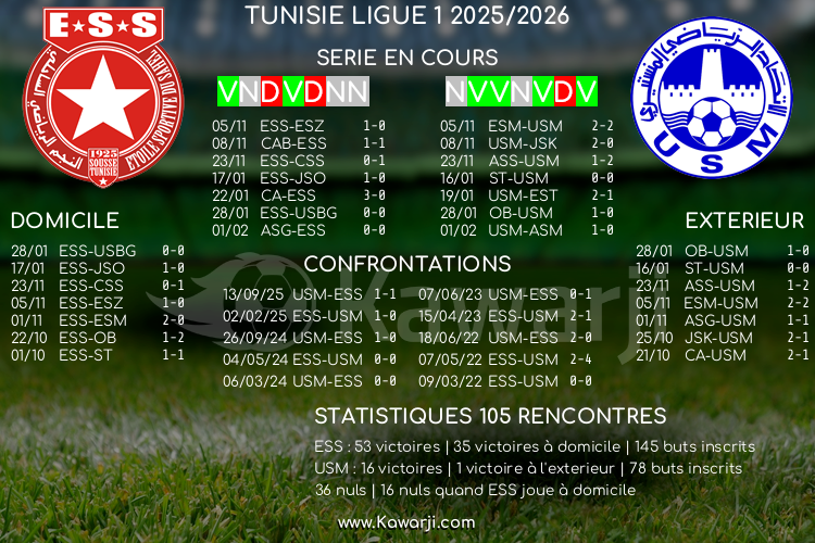 Avant les rencontres prévues ce samedi pour le compte de la 20ème journée de Ligue 1 tunisienne 2025-2026, voici l'historique de ces confrontations en championnat :