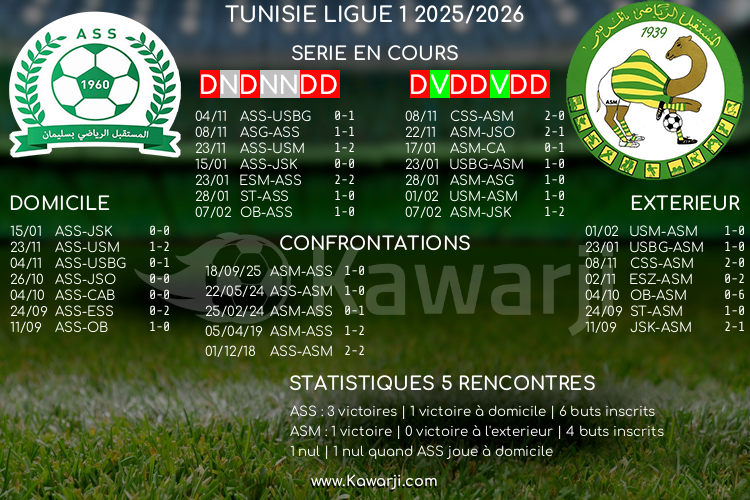L1 25-26/J21 : Historique de la confrontation prévue ce samedi entre l'AS Soliman et l'AS Marsa