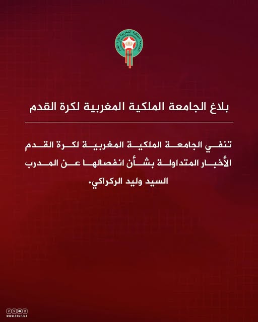 La Fédération Royale Marocaine de Football a publié aujourd'hui un nouveau communiqué au sujet du sélectionneur Walid Regragui.