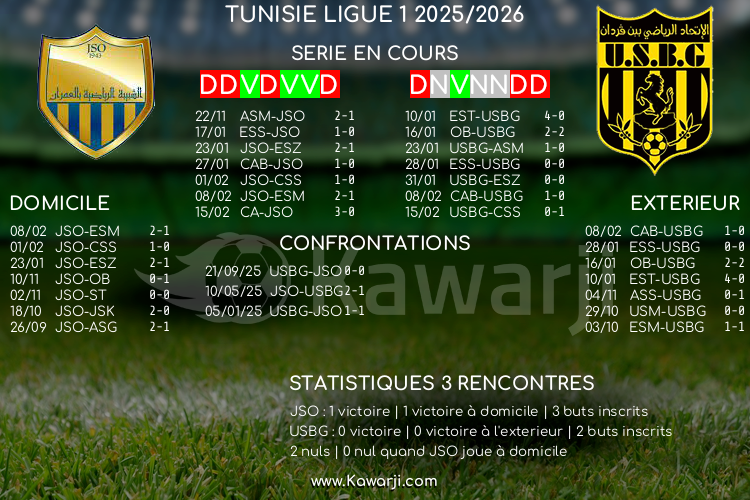 Avant les rencontres prévues ce vendredi pour le compte de la 22ème journée de Ligue 1 tunisienne 2025-2026, voici l'historique de ces confrontations en championnat :