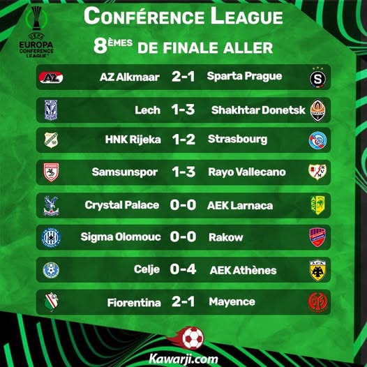 Voici le résultats des matches des huitièmes de finale aller de la Conférence League :