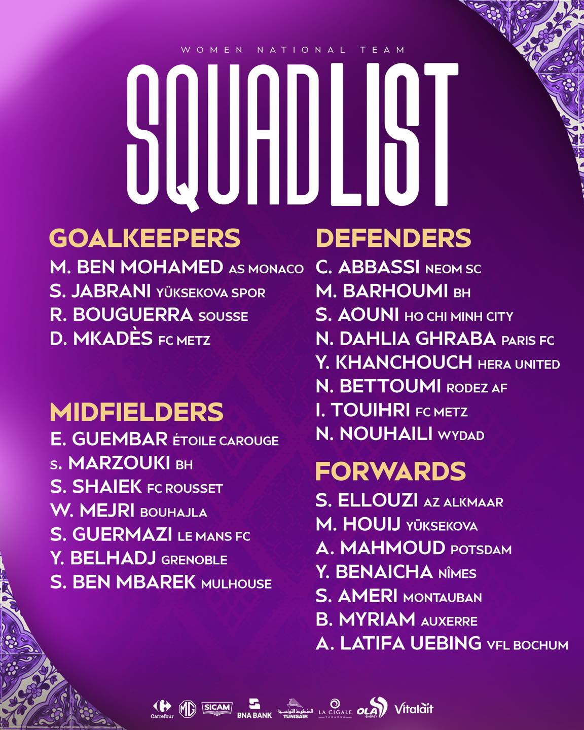 La Fédération Tunisienne de Football a communiqué la liste des internationales tunisiennes appelées à disputer deux rencontres amicales.