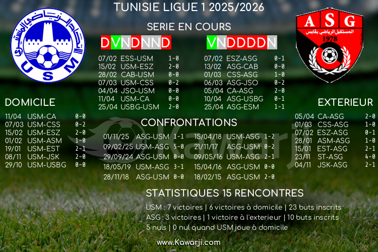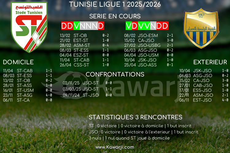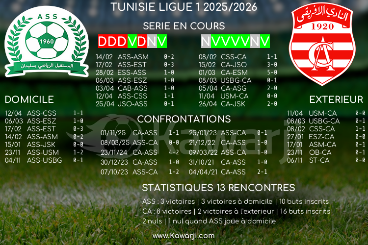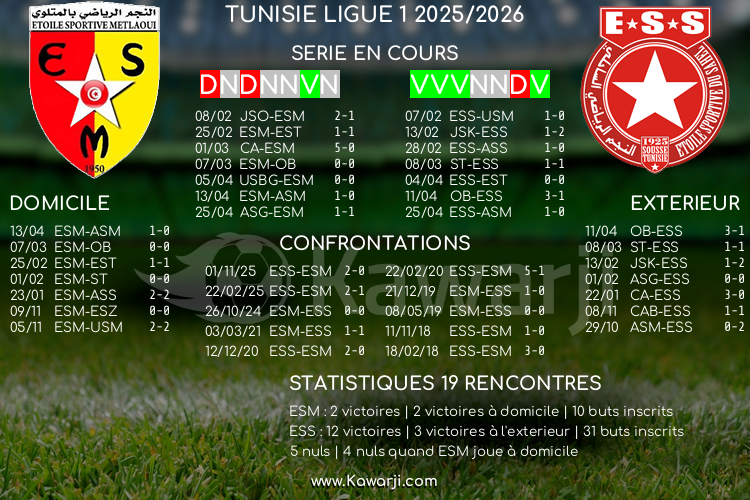 Avant les rencontres prévues ce mercredi pour le compte de la 27ème journée de Ligue 1 tunisienne 2025-2026, voici l'historique de ces confrontations en championnat :